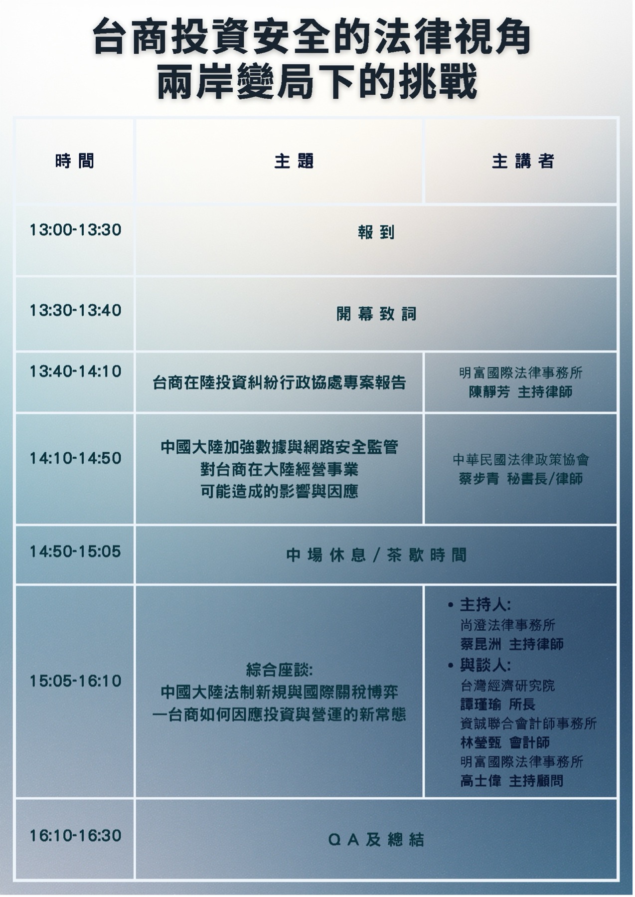 Taiwan Business Seminar Jointly Hosted by the Ministry of Economic Affairs’ Department of Investment Services and MingFu International Law Firm: “The Legal Perspective of Taiwanese Business Investment Security – Challenges Amidst Cross-Strait Changes”