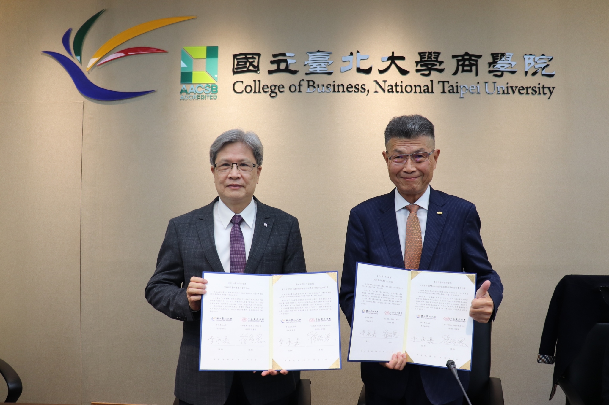 繼2022年5月9日臺北大學商學院與千如電機工業股份有限公司簽訂產學合作契約-「元宇宙(Metaverse)概念運用專案」後,歷經八次專案報告會議及二次個案研究會議後,選定「大千元宇宙價值社群專案研究計畫」及「5G校園專網建制計劃」二項計畫,開啟第二階段之合作,並於2022年12月05日在臺北大學三峽校區商學院會議廳舉行專案簽訂儀式,由國立臺北大學李承嘉校長與千如電機徐明恩董事長共同主持,並代表合作雙方簽約。