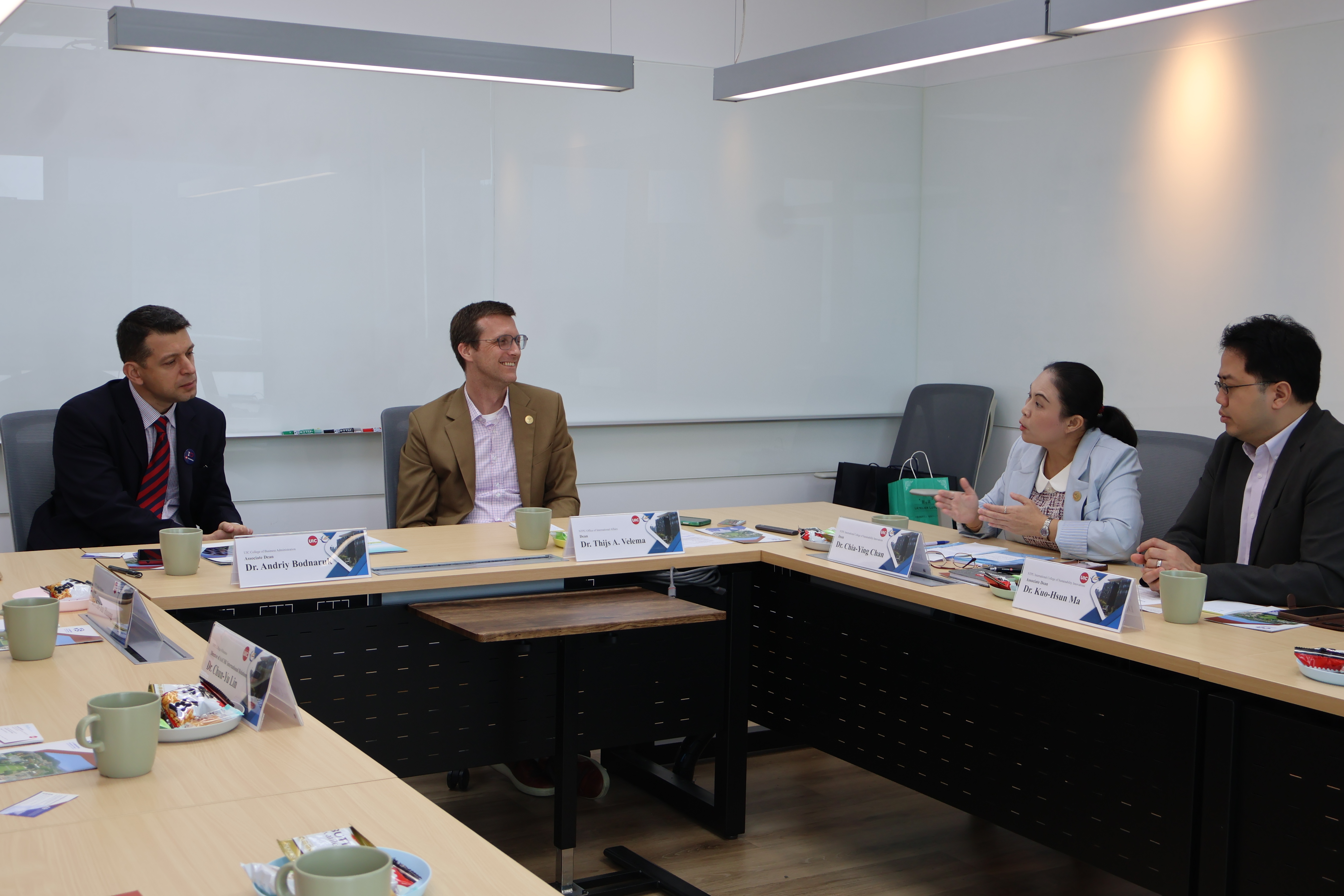Dr. Bodnaruk was received by Dean of International Affairs Thijs A. Velema, College of Business Dean Chi-Jui Huang, International College of Sustainability Innovation Dean Sherry Chia-Ying Chan, and other faculty leaders including Min-Yuh Day, Chun-Yu Lin, Josef Kuo-Hsun Ma, Chien-Lin Lu, and Haobijam Basanta. The visit follows months of talks that began in August, with both sides moving toward a formal partnership expected to be signed by year’s end.