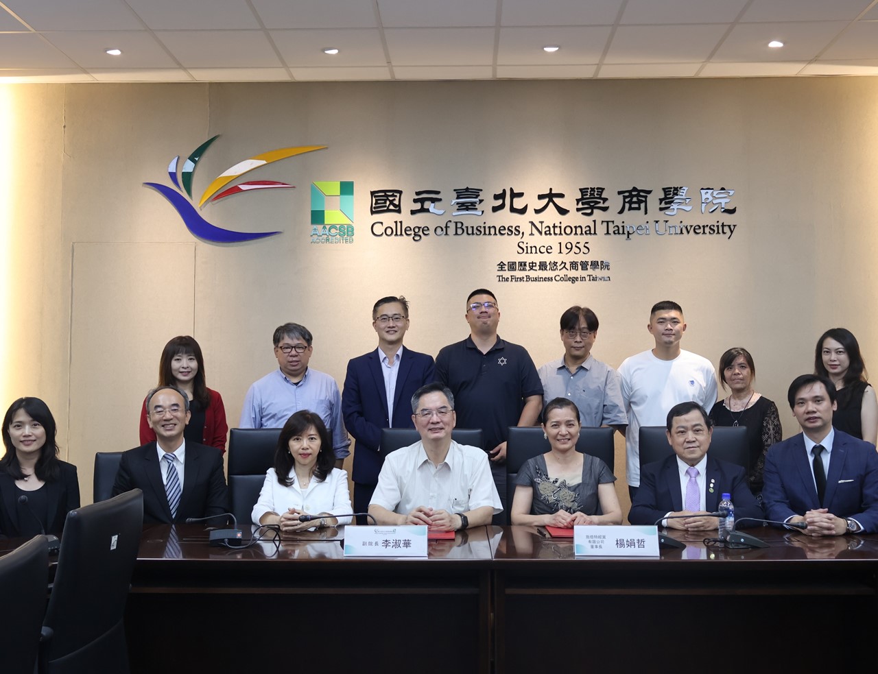 國立臺北大學商學院於2025年9月5日(五)下午15:00–16:00,在臺北大學三峽校區 商學院3F06院會議室,與施倍特經貿有限公司正式舉行「國際雙語教育科技AI永續創新產學合作備忘錄(MOU)」簽署典禮。