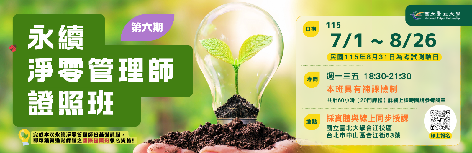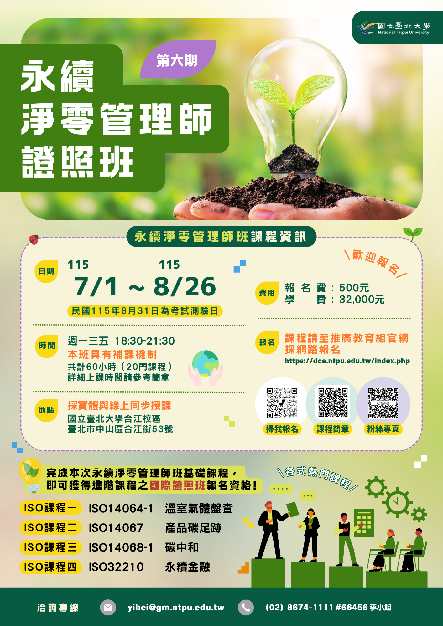 國立臺北大學第六期《永續淨零管理師》證照班報名開跑囉!..