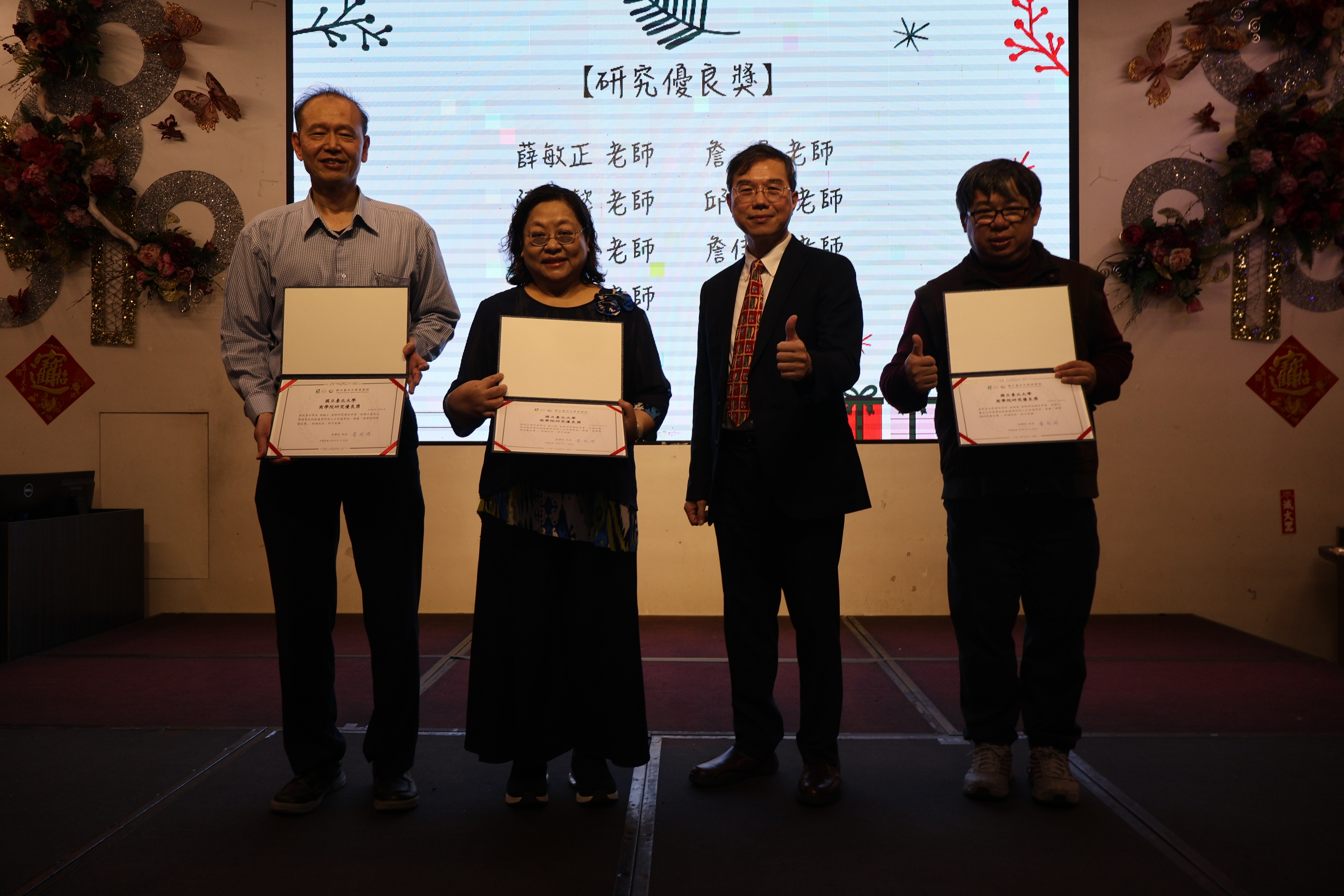 陳宥杉學術副校長頒發感謝狀,感謝陳思先執行長、陳澤義執行長、李堅明教授及蔡家昌教授擔任此次競賽評審