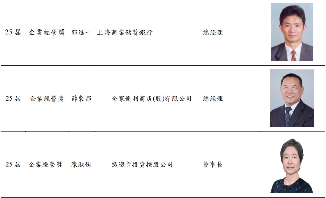 | 企業經營獎 | 周筱玲 | 企業管理研究所企業經理人高級班 |