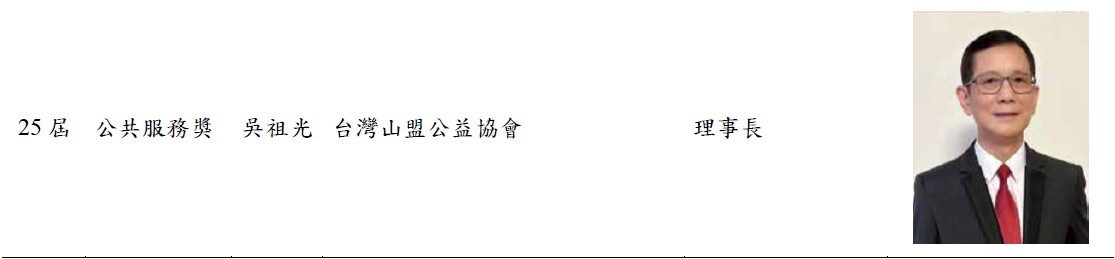 | 公共服務獎 | 周建源 | 法商學院合作經濟學系 |