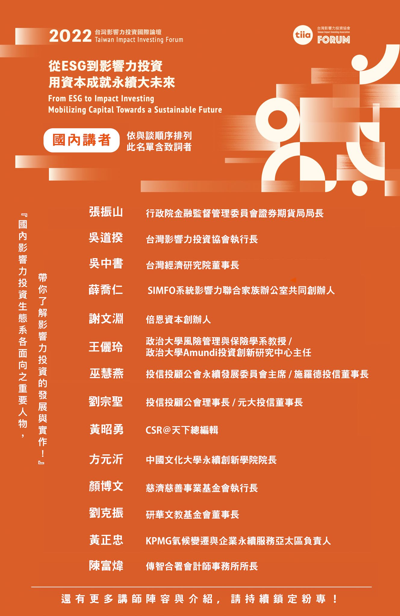 數位賦能與永續金融:建構共榮的企業 ESG 生態系Digital Empowerment & Sustainable Finance: Building an Inclusive Corporate ESG Ecosystem 本分場聚焦「數位賦能」與「永續金融」,探討企業如何運用資料治理、雲端與AI工具,精準衡量與管理ESG績效,並在供應鏈建立信任與透明度,最終促成跨產業合作的共榮ESG生態系與競爭力提升。 時間|2025/11/26(三)09:00–12:00 地點|圓山大飯店 10F 長青廳(臺北市中山區中山北路四段1號) 報名網址|https://reurl.cc/R9nLlz 請點選:11/26|上午場|臺北大學商學院|數位賦能與永續金融:建構共榮的企業ESG生態系 分場亮點: 專題一|金融科技:企業轉型計劃與金融機構審查報告 A I 平台(主講:黃啟瑞 院長/國立臺北大學商學院) 專題二|善用 ESG 資訊與 IR Engage 平台:貫徹永續責任投資(主講:陳文練 總經理/臺灣指數公司) 專題三|台灣企業永續策略(主講:邱健嘉 助理教授/國立政治大學財務管理學系) 專題四|道德消費決策(主講:黃文曄 副教授/國立臺北大學企業管理學系) 綜合討論 / Q&A(與談交流) 本分場相關議程如下: https://drive.google.com/file/d/1wPyFyd810Ah6Jc8V87v1ivwGsgE1H4yq/view?usp=drive_link 參與加值 聚焦 ESG 資料治理、揭露與投資決策連動,提供可落地的方法與工具 促進產官學對話,強化企業、投資人與供應鏈的共同語言與協作 ※ 若需董監事/公司治理主管進修或環境教育時數等認列,將依主辦單位規定辦理並以現場簽到退為準