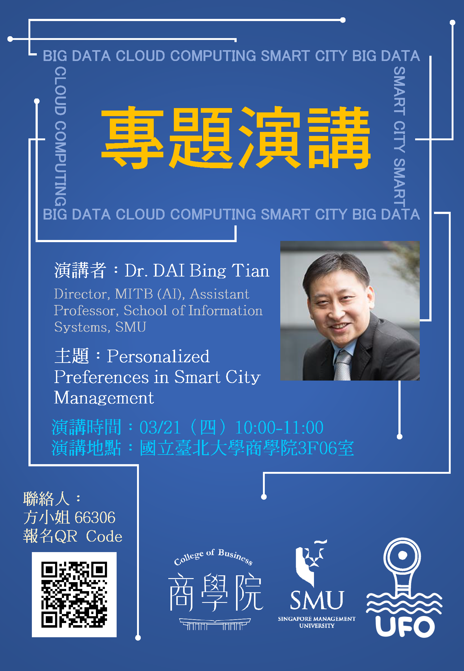 很高興本次邀請SMU蒞臨本院,講述有關雲端運算及智慧城市的議題,歡迎各位踴躍參與